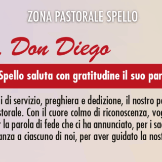 ZONA PASTORALE SPELLO Grazie, Don DiegoLa Comunità di Spello saluta con gratitudine il suo parrocoSabato 18 ottobre ore 17.30 chiesa di santa Maria Maggiorecelebrazione eucaristica...
